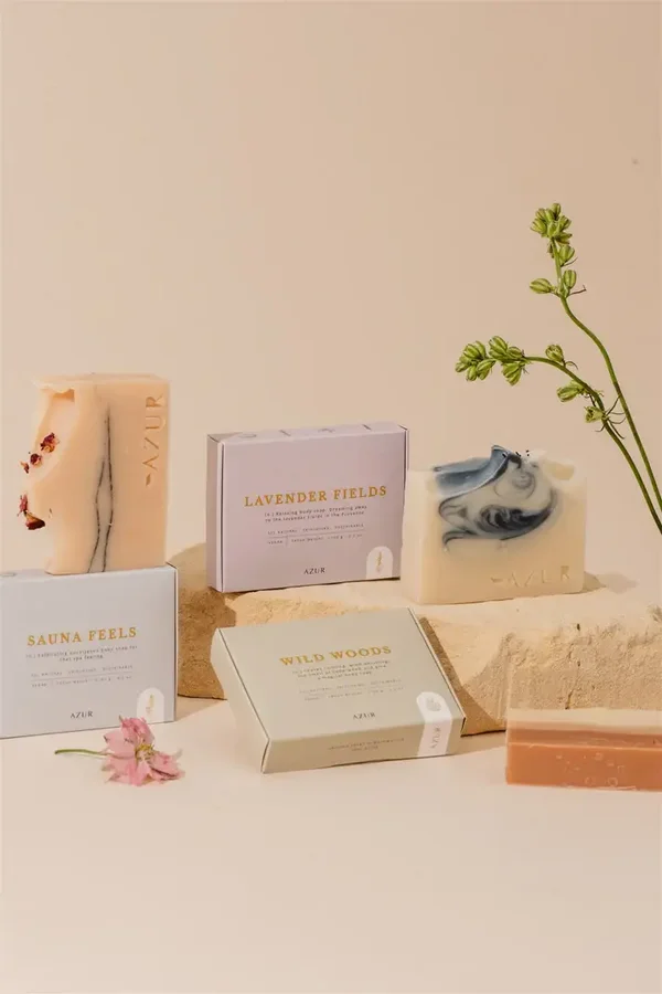 Uniek aan de zepen van Azur is dat er een zeker percentage van de voedende oliën, zoals olijfolie, cacaoboter of zoete amandelolie, niet mee reageert in de chemische reactie tijdens het verzepingsproces, waardoor de zeep niet uitdroogt maar voedt, en dat voel je!